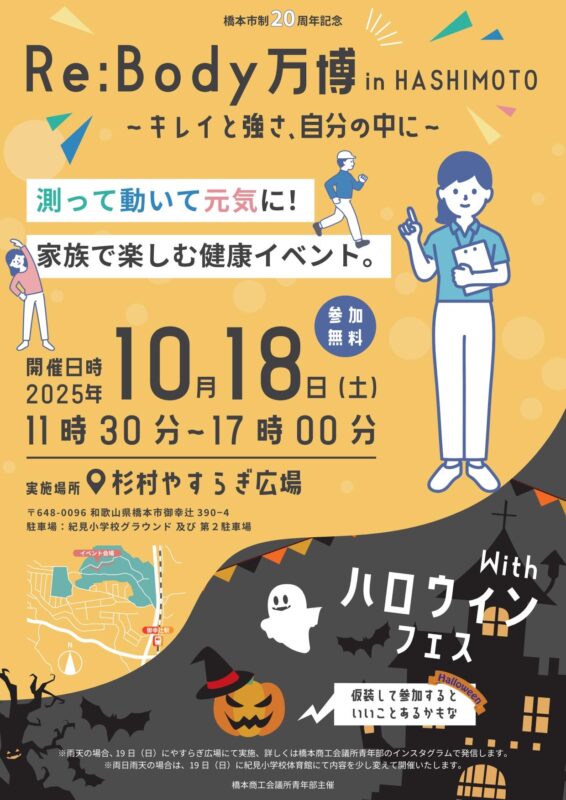 去る10月18日(土)、橋本商工会議所青年部主催の【Re:body万博 in HASHIMOTO~キレイと強さ、自分の中に~with ハロウィンフェス】がありました。
