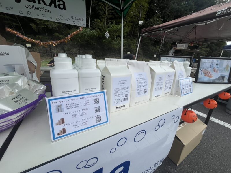 本イベントは「Re:body(体全体のバランスや機能、さらには内側からの健康)」を目指し、開催されました。弊社でも、同じ橋本市内の工場で日々手や肌に優しい洗濯用洗剤や食器用洗剤を製造しているということで、参加される皆様に商品や会社を知っていただけたら…と、本イベントに出展させていただきました。